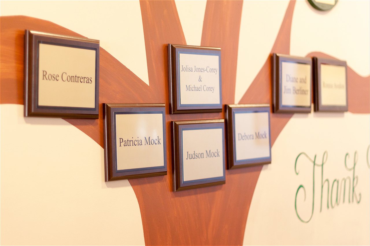 We are recognizing our 40th anniversary supporters through a special “Giving Tree” mural, which will serve as a focal point of the Mar Vista Family Center and as an example of the spirit of giving for years to come. Located on a vast wall connecting our reception area to the courtyard, the mural will feature plaques with supporters’ names on them. Each gift will help complete the tree as a whole, adding new leaves, branches and the trunk, depending on the gift level. The tree will reflect the strength and generosity of our community.